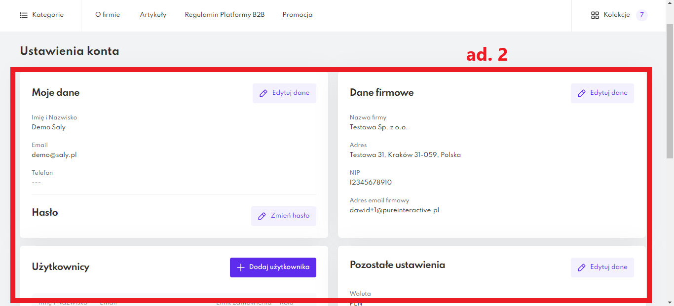 1.0 Pierwsza wersja instrukcji. | 07.12.2021 | ustawienia, ustawienia konta, moje konto, dane, zamówienia, hasła, zmiana hasła, edycja, edycja danych |