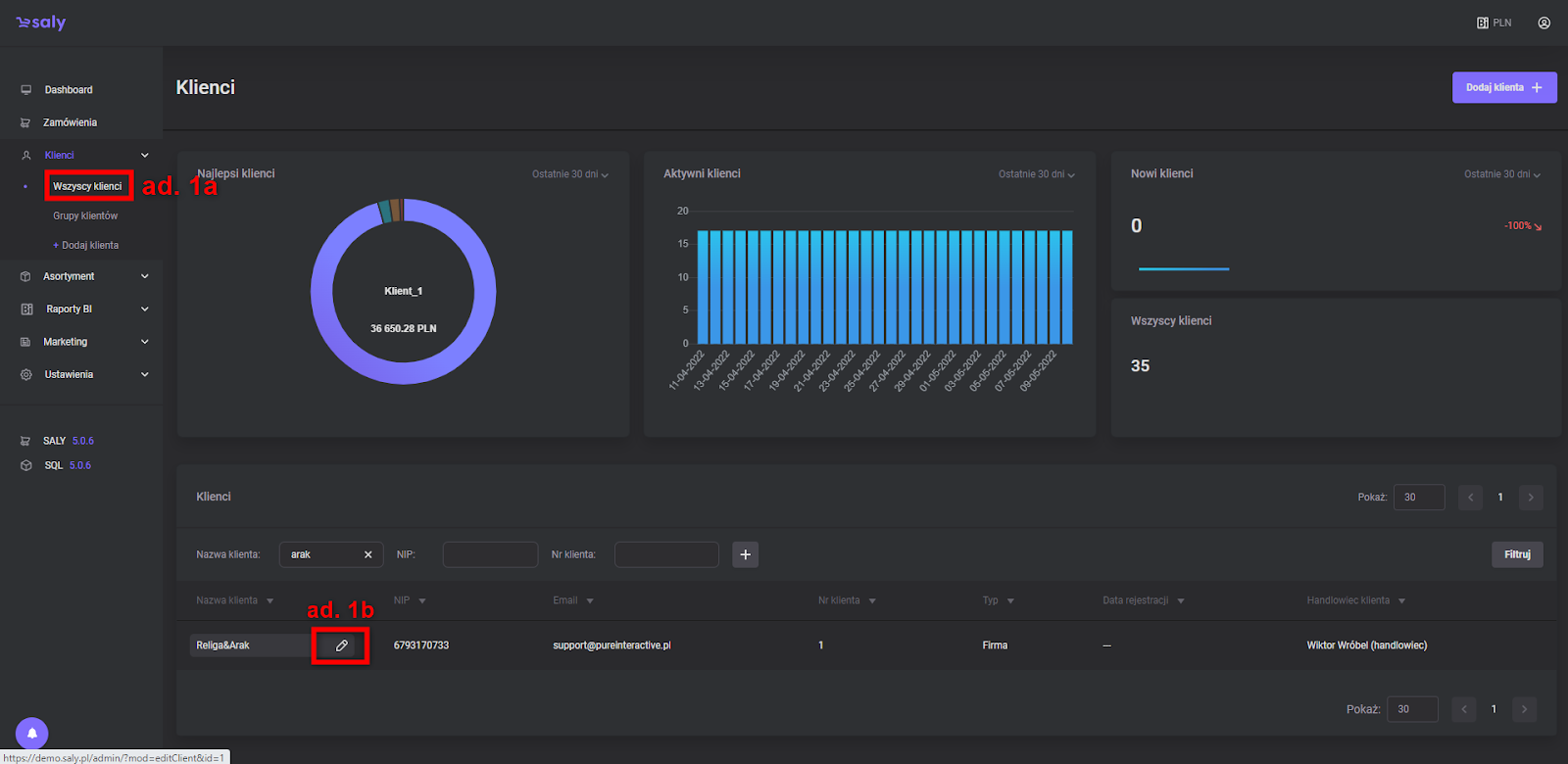 b) Search for the desired client and enable the edit option.