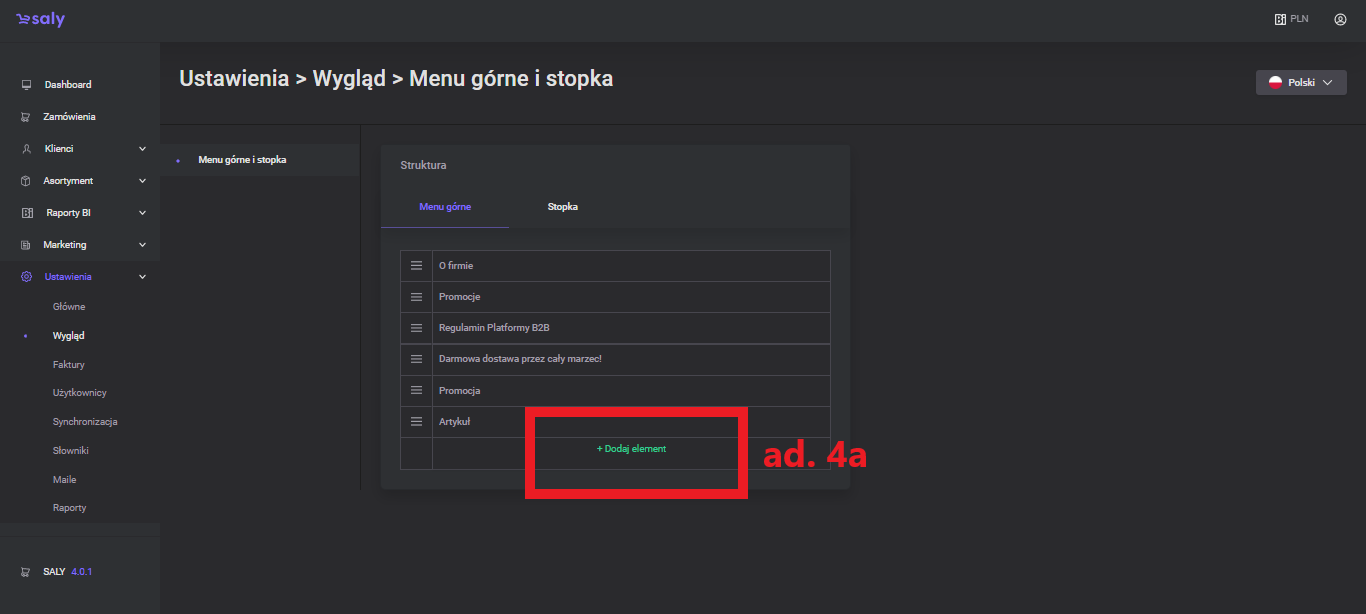 In the Structure field, select which menu you want to edit. The scheme of adding further elements and introducing changes is the same for the top menu and the menu in the footer.