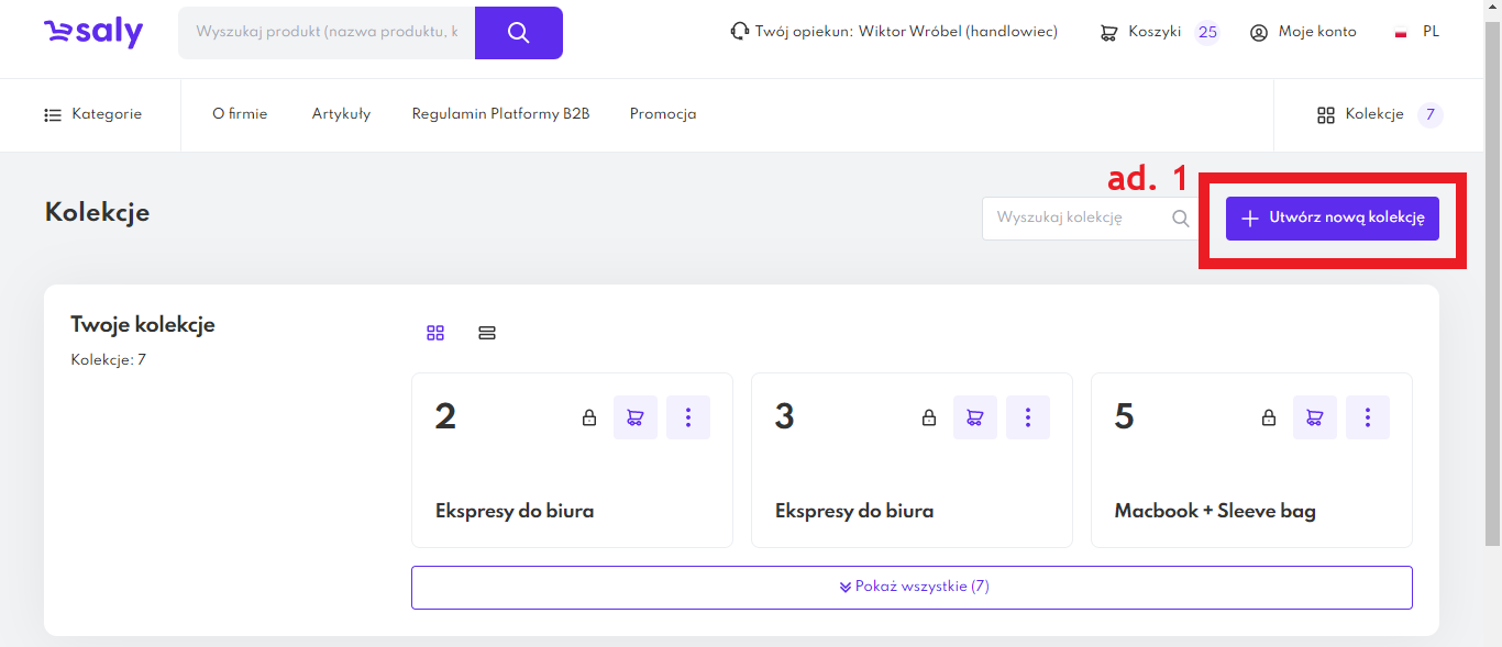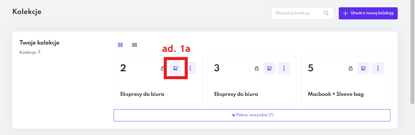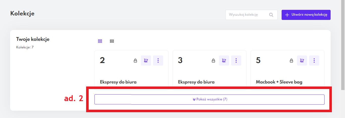 Aby utworzyć nową kolekcję, naciśnij przycisk Utwórz nową kolekcję. To create a new collection, click the Create a new collection button.