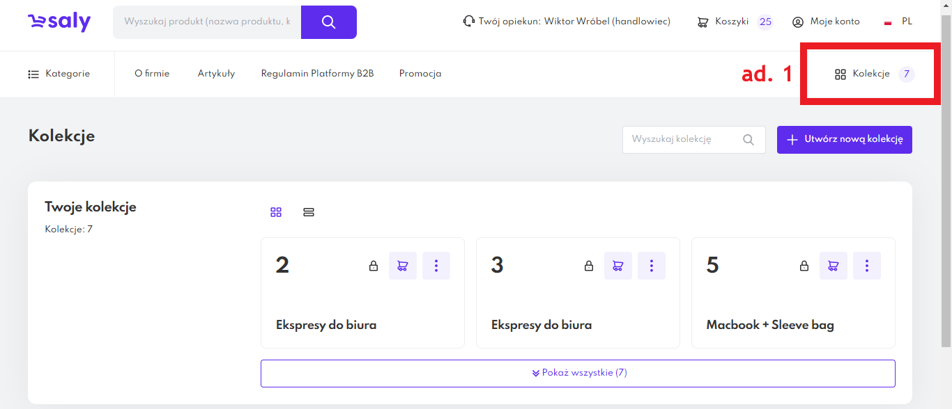 1.0 Pierwsza wersja instrukcji. | 10.11.2021 | Kolekcje, tworzenie kolekcji, dodawanie produktu do kolekcji, edytowanie kolekcji, tworzenie koszyka, koszyk |