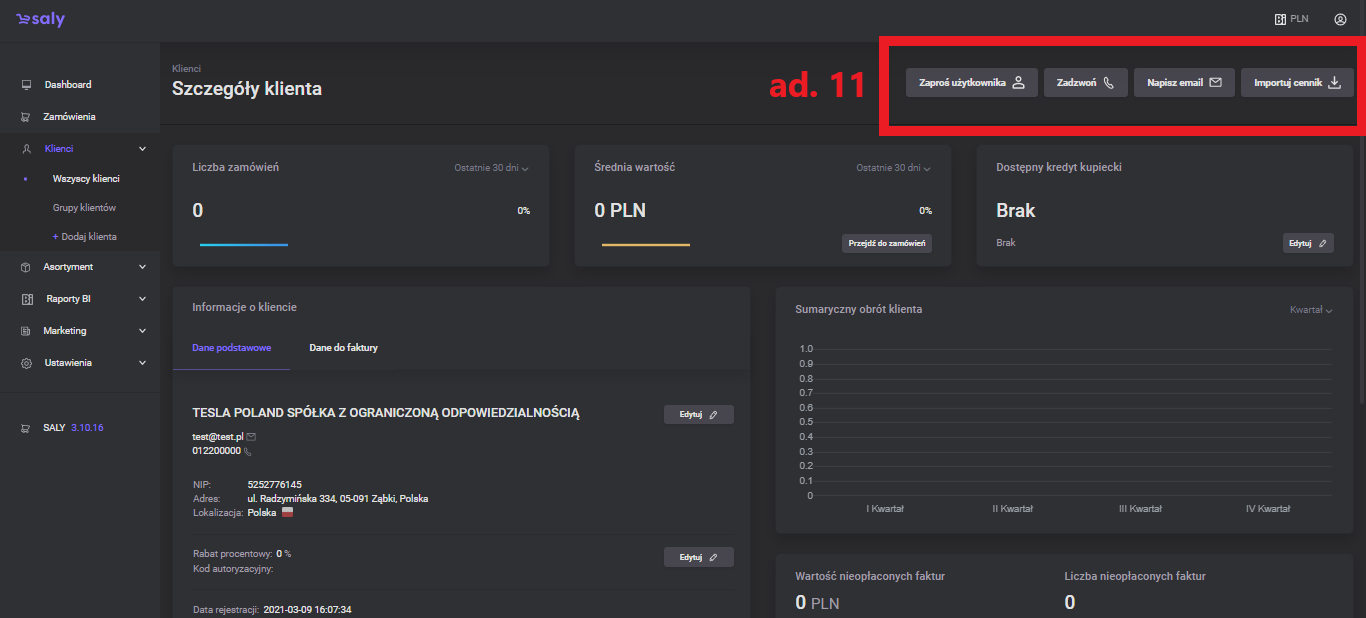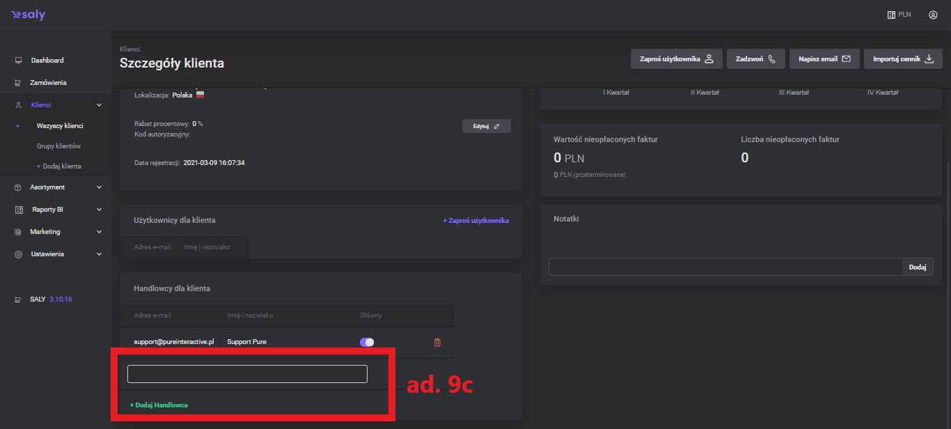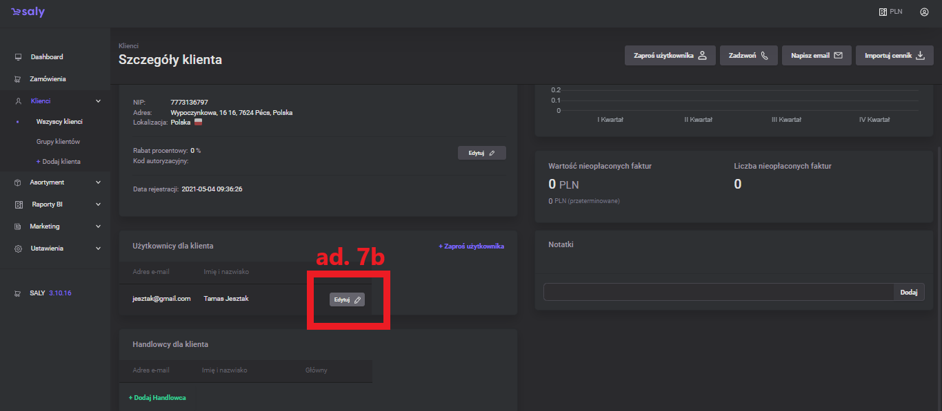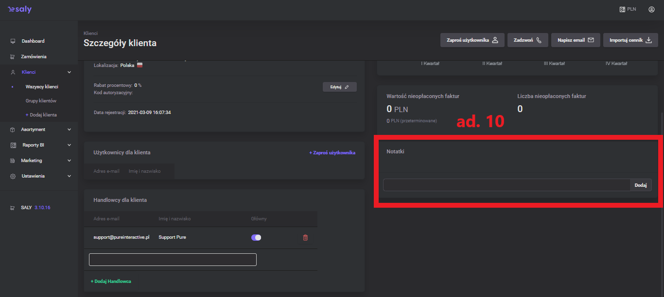1.0 Pierwsza wersja instrukcji. | 04.03.2022 | liczba zamówień, średnia wartość, kredyt kupiecki, informacje o kliencie, obrót klienta, nieopłacone faktury, użytkownicy, edycja uprawnień użytkownika, handlowcy, notatki, dodatkowe przyciski |