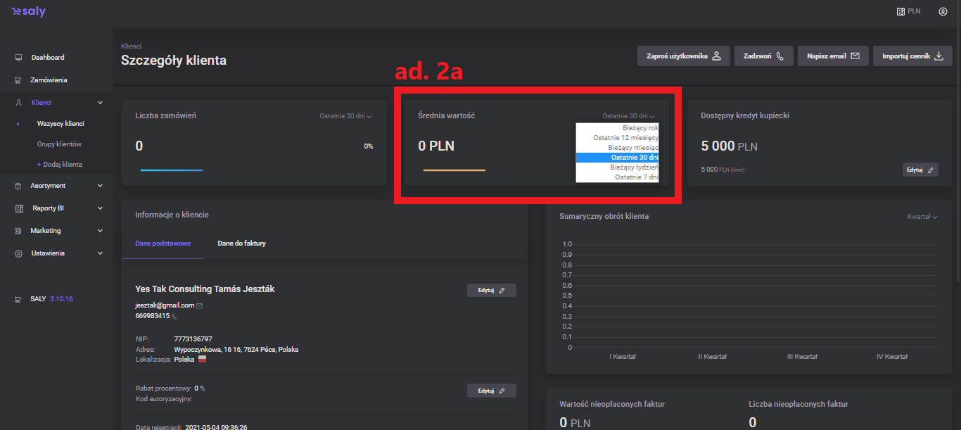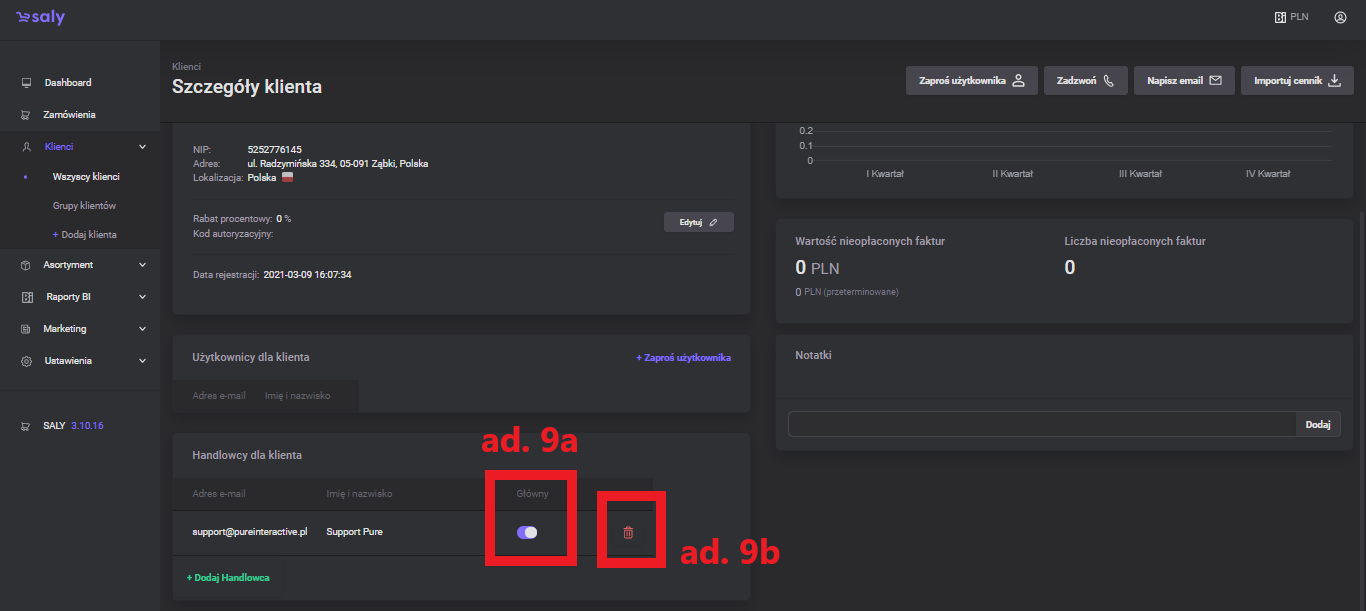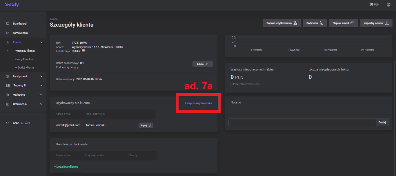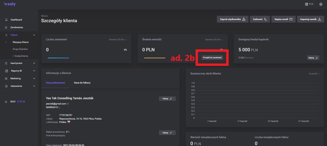 1.0 Pierwsza wersja instrukcji. | 04.03.2022 | liczba zamówień, średnia wartość, kredyt kupiecki, informacje o kliencie, obrót klienta, nieopłacone faktury, użytkownicy, edycja uprawnień użytkownika, handlowcy, notatki, dodatkowe przyciski |