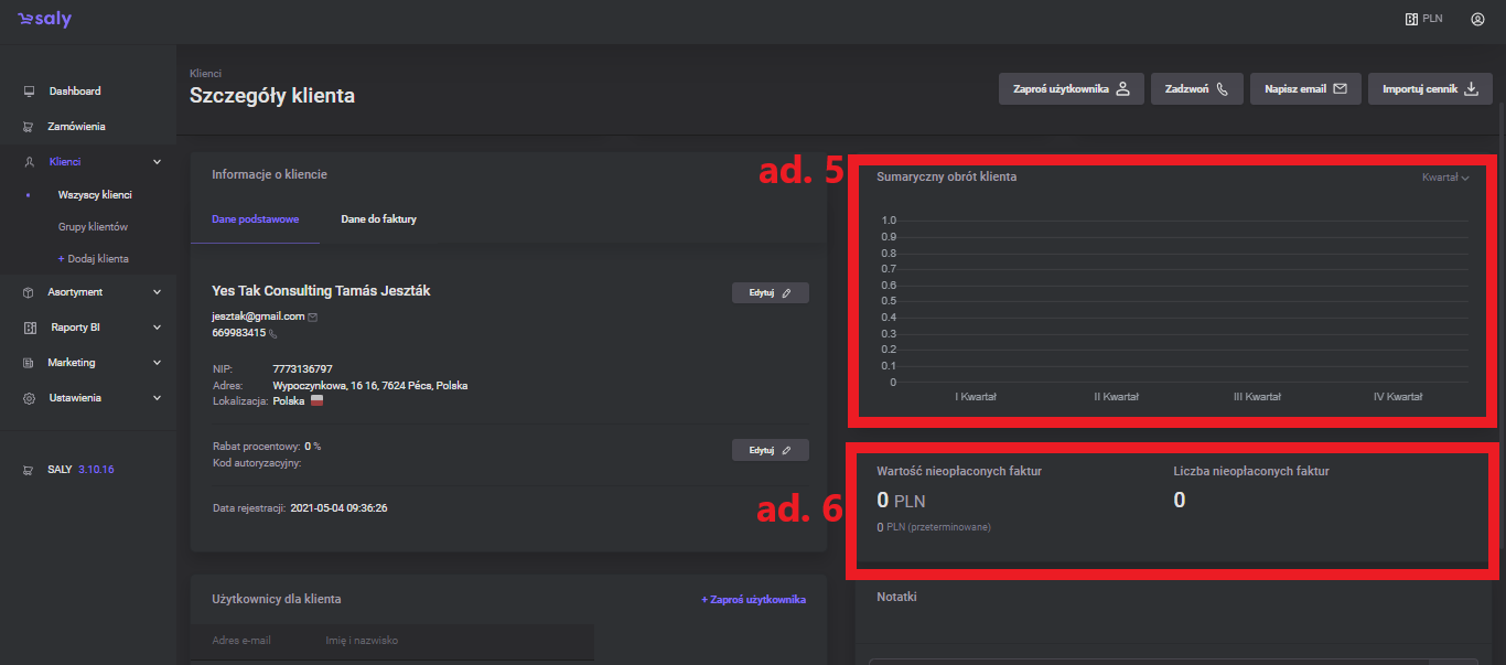 Customer information - basic information about the company along with contact details, the value of the granted percentage discount, authorization code (a unique code required during registration) and the date of registration.