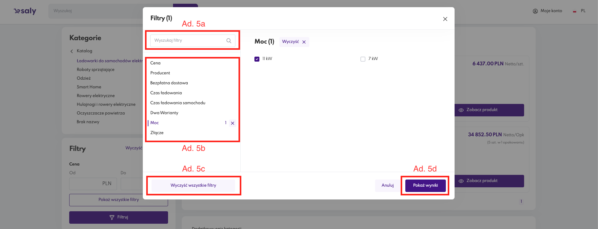 Listę produktów w danej kategorii możesz zawęzić używając filtrów.