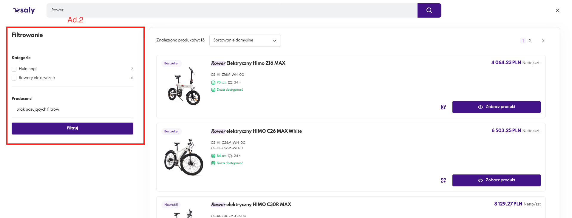 Listę produktów w wynikających z procesu wyszukiwania możesz zawęzić używając filtrów.