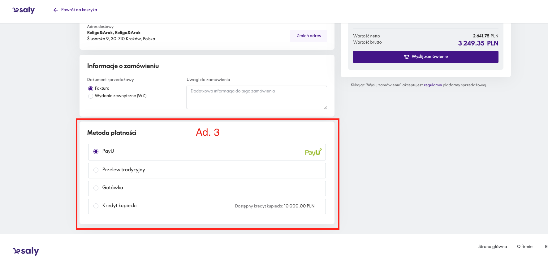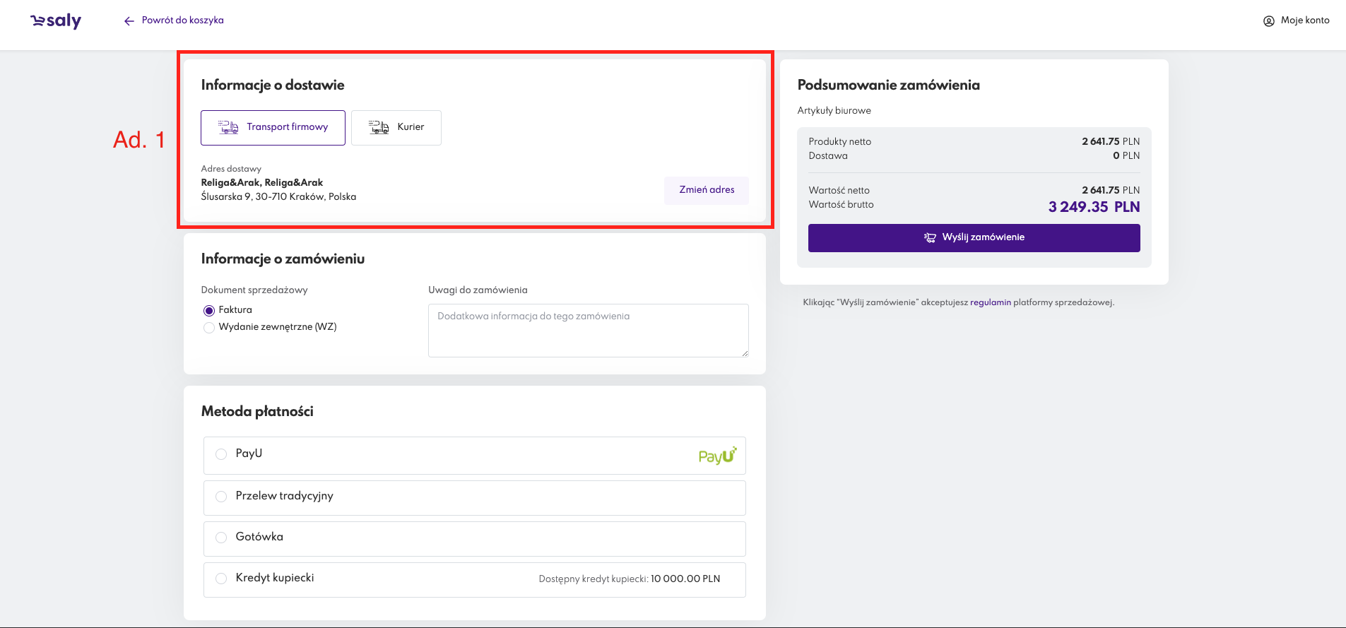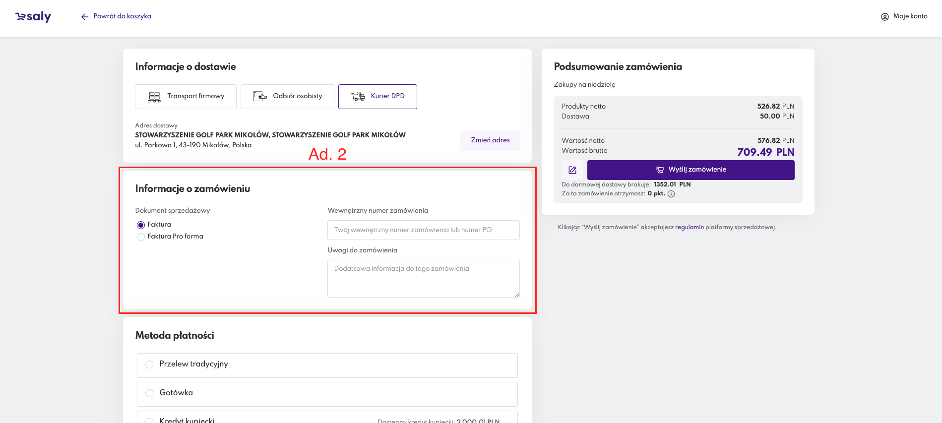 Jeśli w Twojej organizacji posługujecie się takim numerem, platforma SALY w podsumowaniu zamówienia umożliwia jego wprowadzanie.