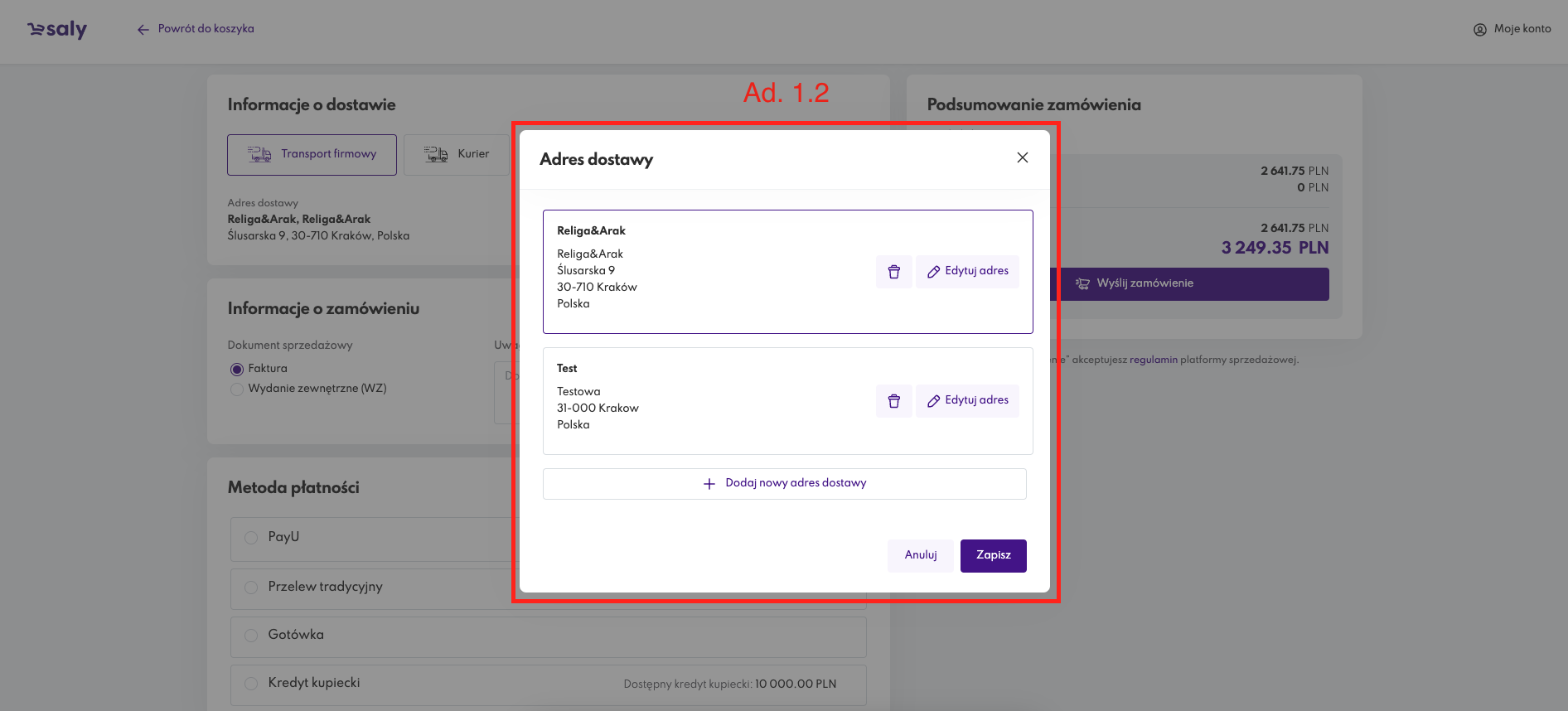 Jeśli zaś nie dysponujesz stosownymi uprawnieniami lub zmiana adresu wysyłki Twojego zamówienia ma mieć charakter jednorazowy, należy użyć Zmień adres. Aby zmienić adres wysyłki należy: