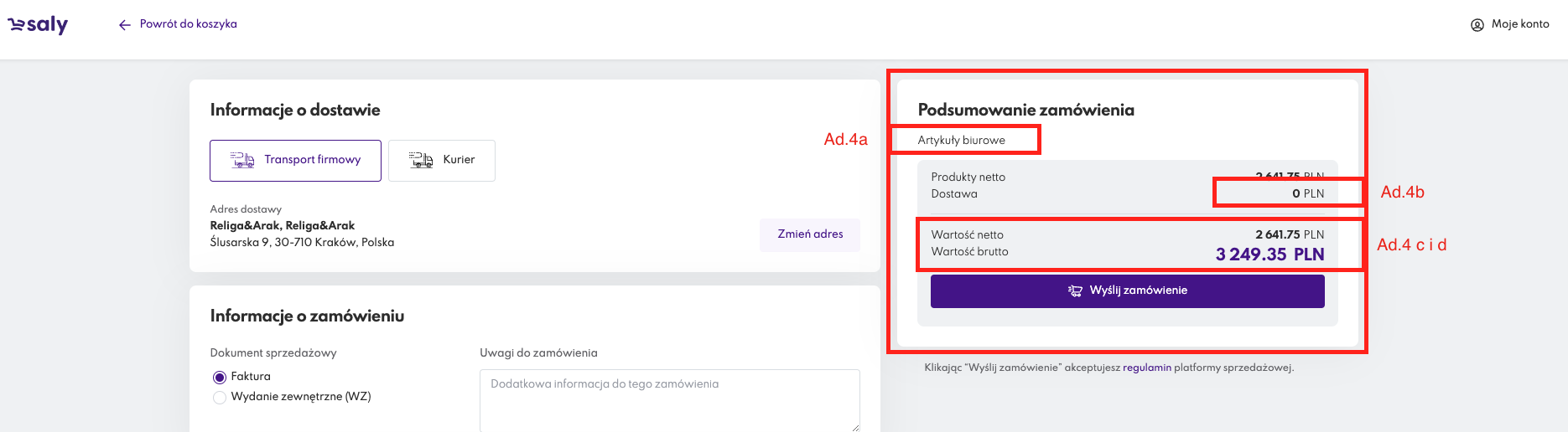 c. po dokonaniu wyboru, możesz przejść do sekcji Podsumowanie zamówienia.