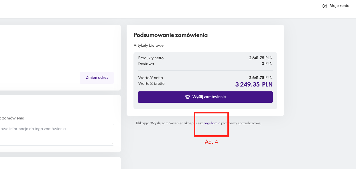 Klikając przycisk Wyślij zamówienie jednocześnie akceptujesz regulamin platformy sprzedażowej, umieszczony pod przyciskiem.