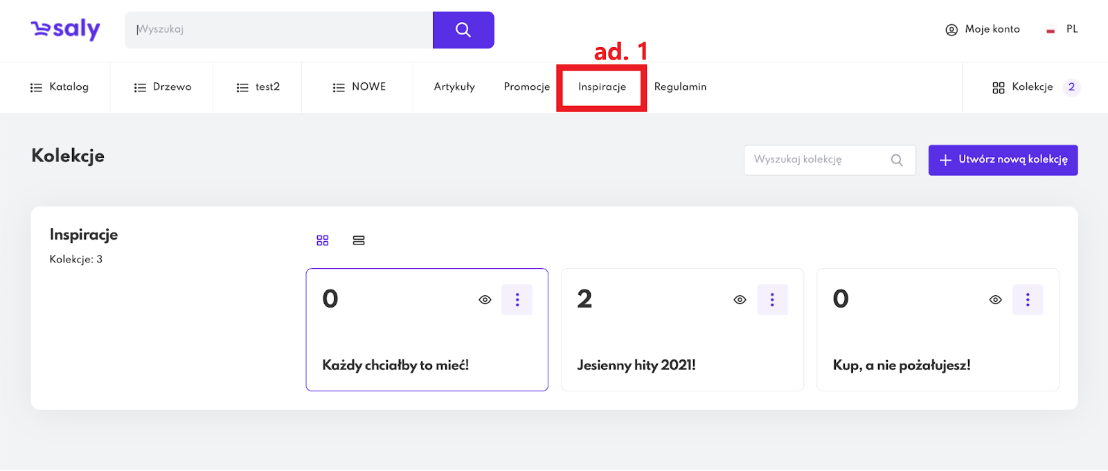 Inspirations are collections created by the administrator. They include products selected based on various criteria like special occasions (Christmas products) or current trends.