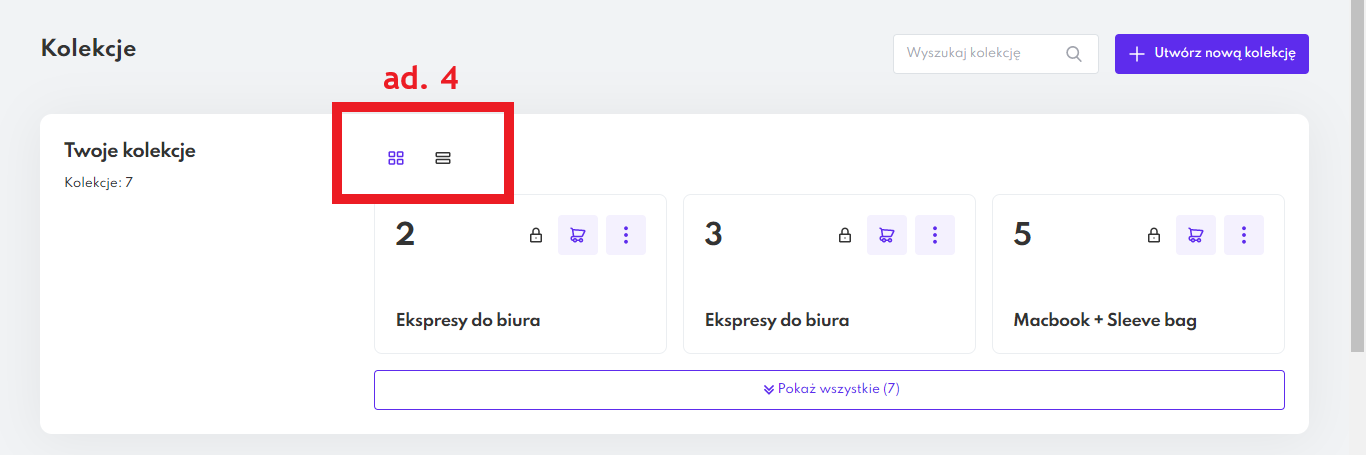 Wszystkie kolekcje możesz wyświetlić w formie kafelków lub listy przy pomocy przycisków znajdujących się w górnej części podstrony z kolekcjami.