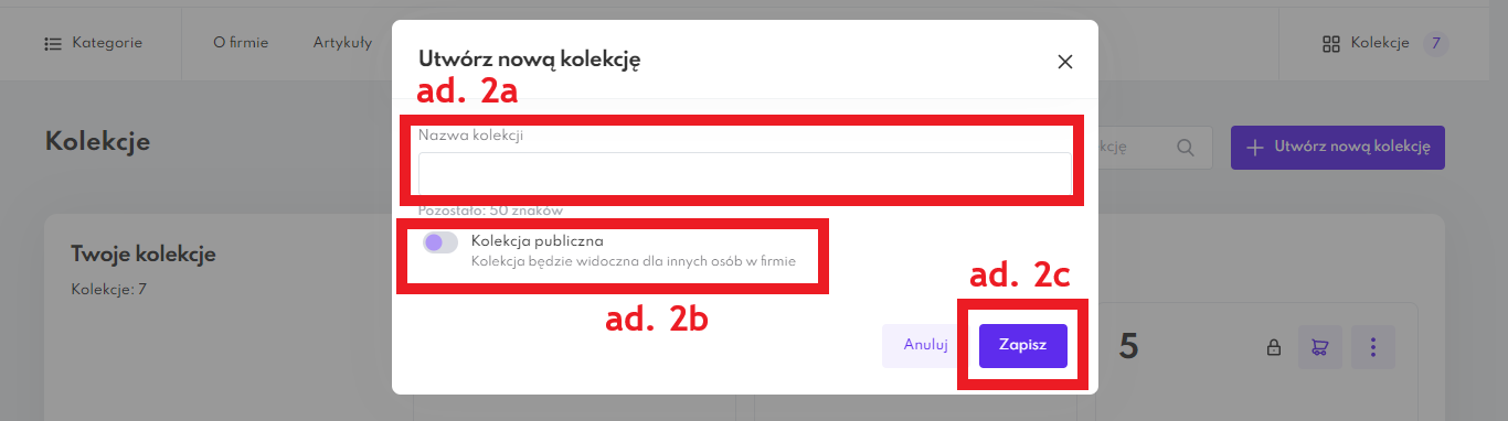 Wpisz nazwę kolekcji. Maksymalna liczba znaków wynosi 50.