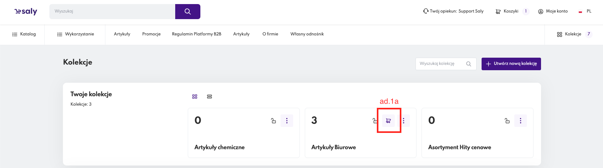 Widok 10. Przycisk tworzenia koszyka z utworzonej kolekcji.