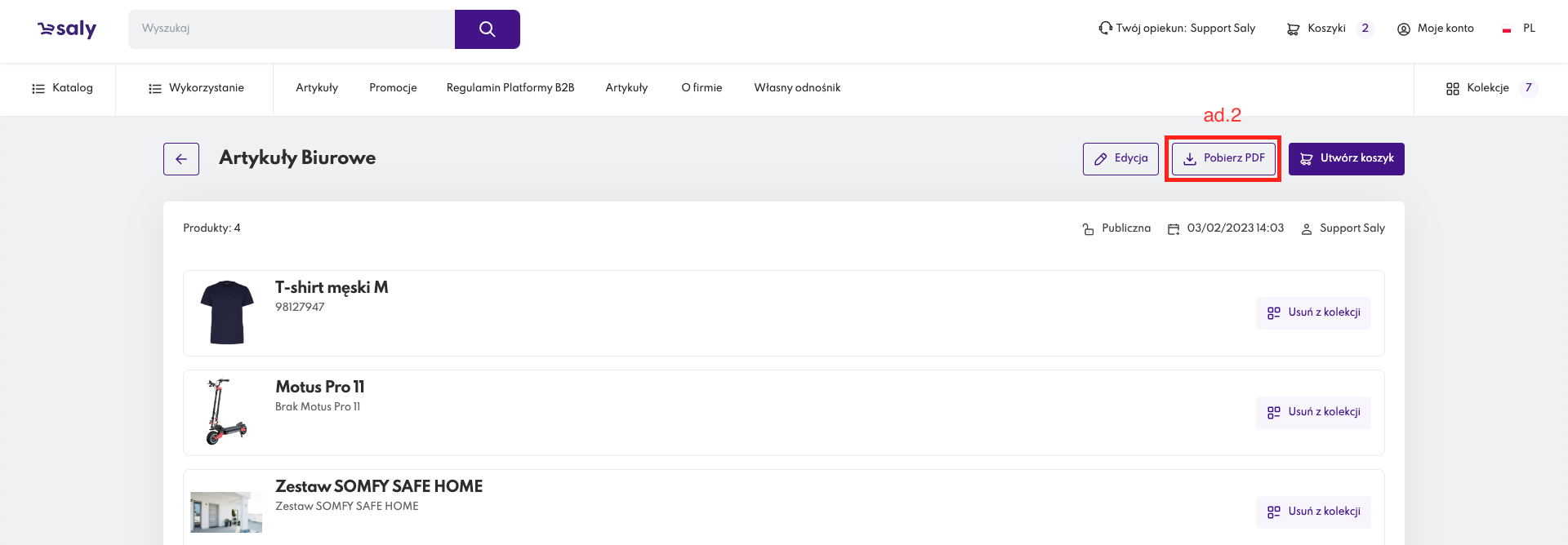 Kolekcje pozwolą Ci i administratorowi sklepu utworzyć zestawy produktów, które możesz przeglądać i dodać do koszyka. W tym miejscu możesz zgromadzić swoje ulubione produkty, a następnie wygenerować je w formie katalogu PDF i wysłać pracownikom Twojej firmy lub klientowi (np. jako element oferty).