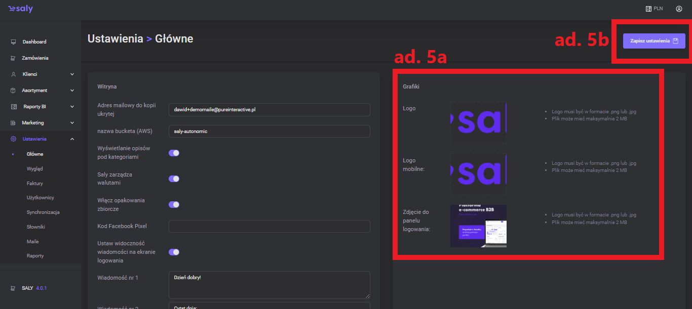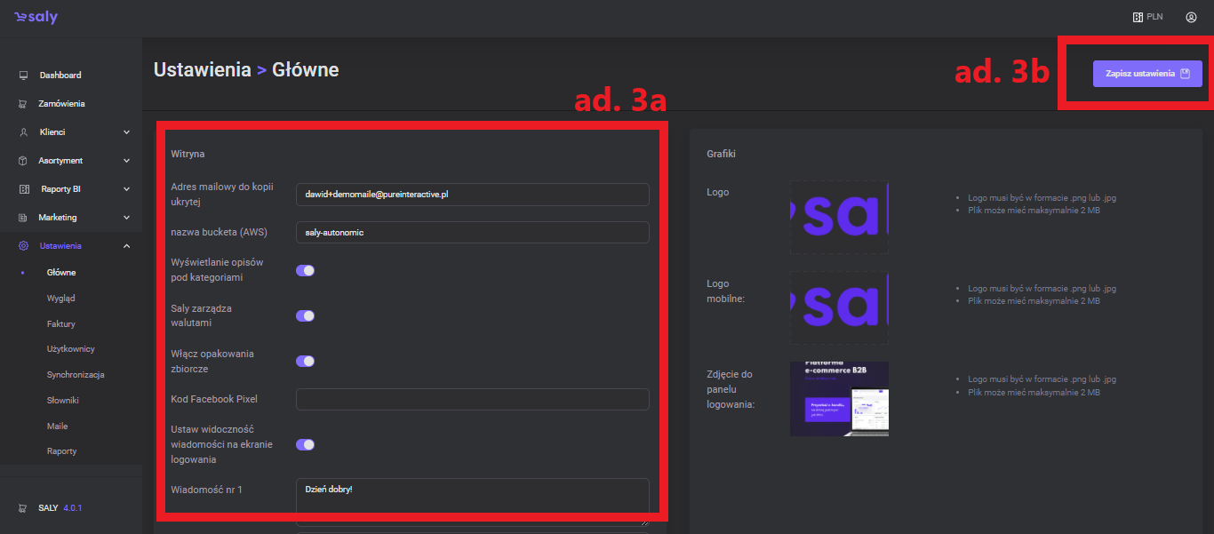 The main settings tab allows you to make system changes, incl. in the field of access, currency and payment management.