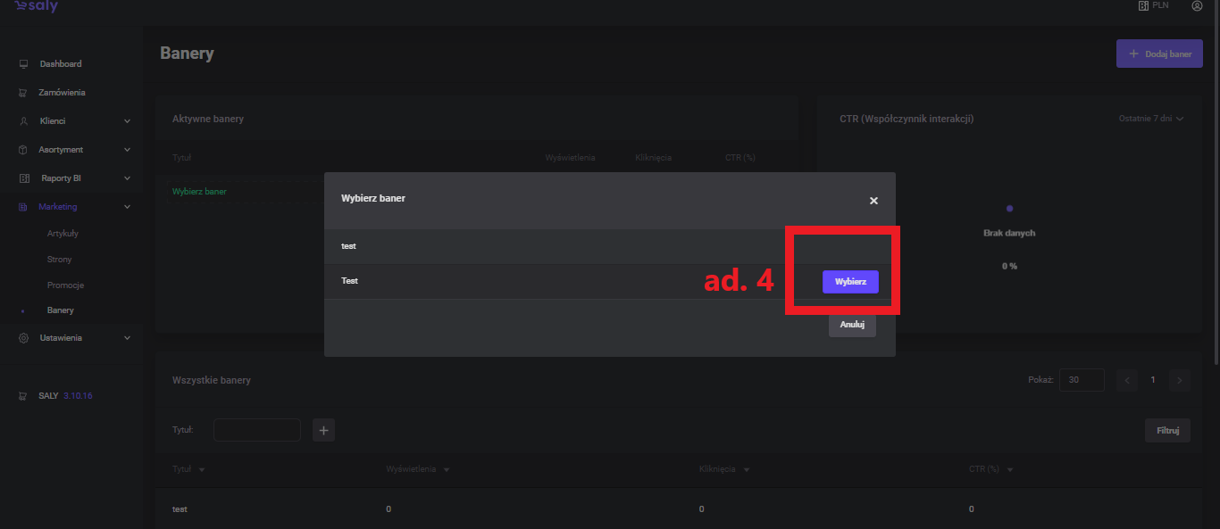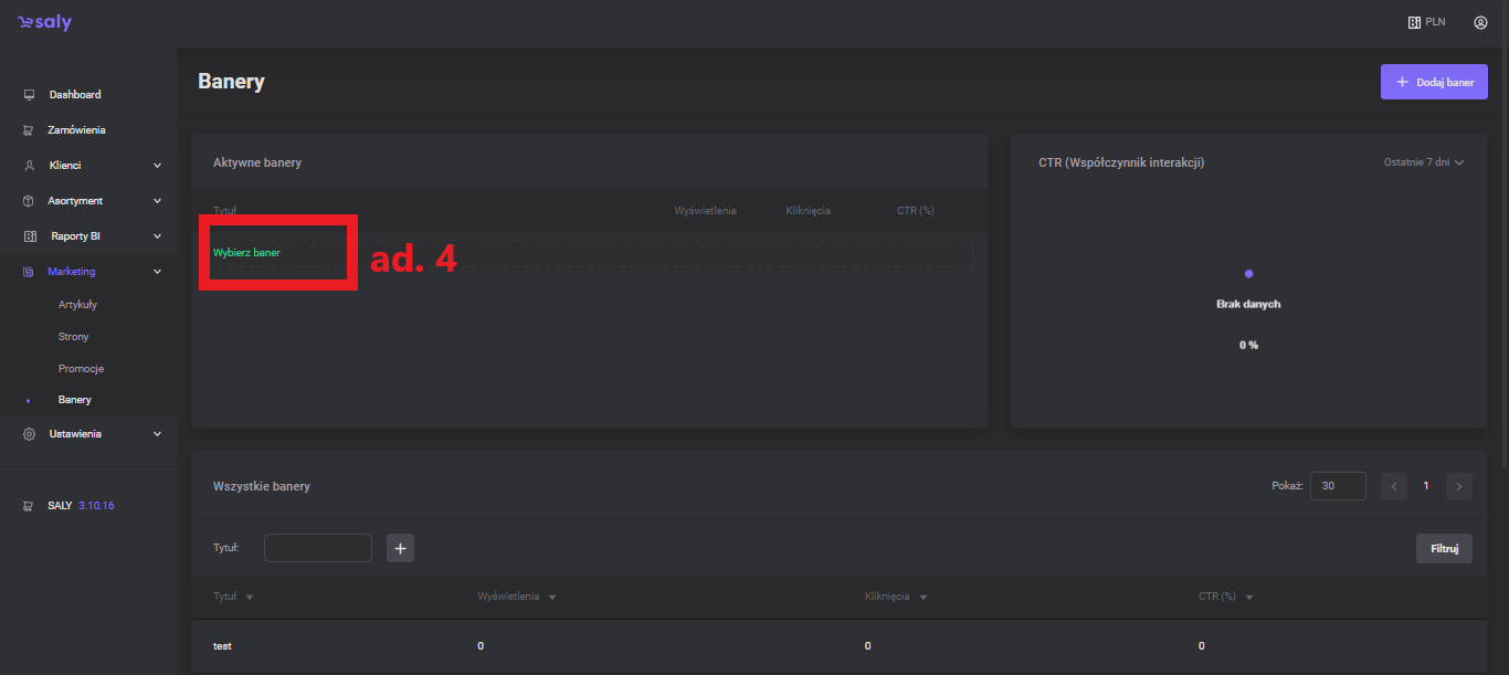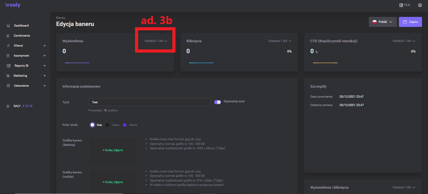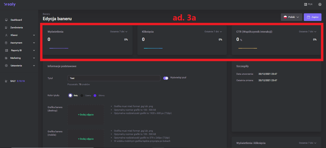On the edition subpage, you will find tiles with banner analytics in the selected time period. The information includes the number of impressions, the number of clicks, and the interaction rate (the ratio of clicks to impressions).