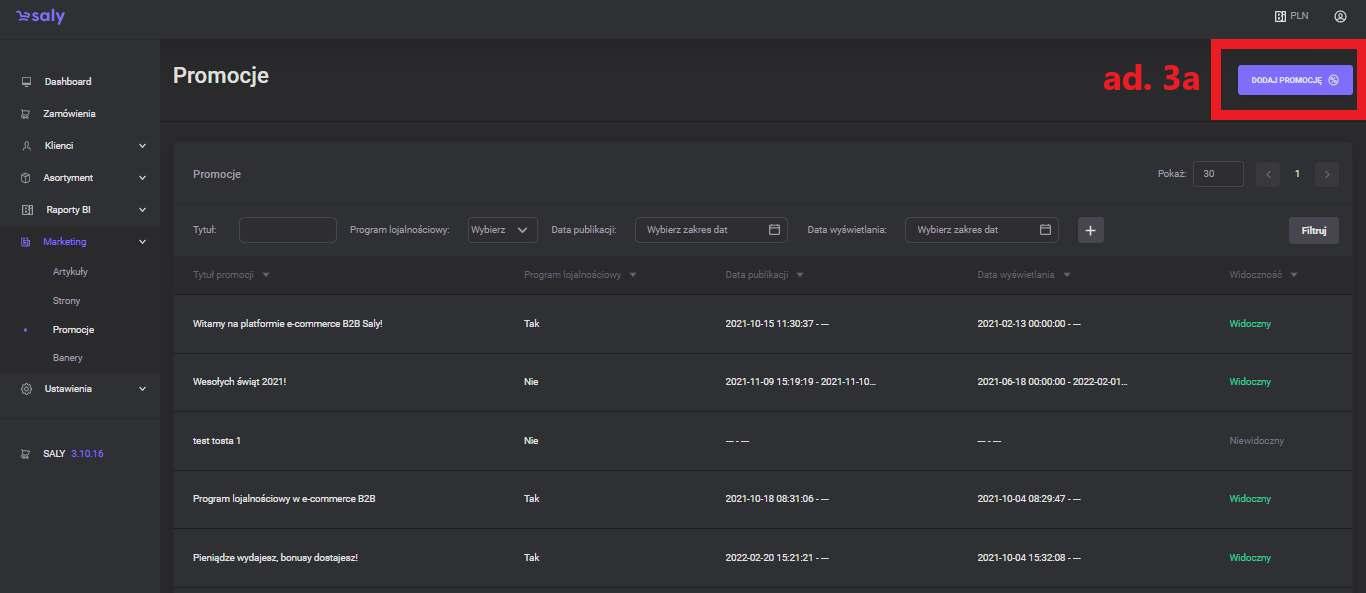Filtering. You can apply filters to the list of promotions/programs by title, publication date, display date and form (whether it is a promotion or a loyalty program).