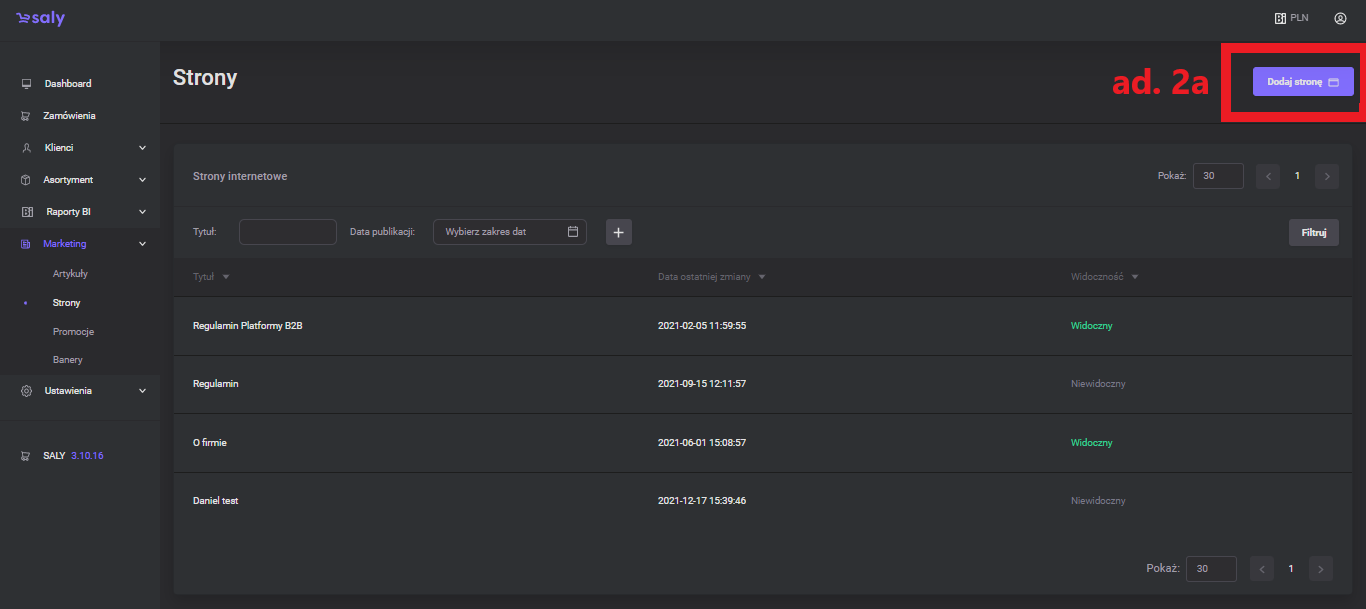 In the list of pages, you will find titles, the date of the last modification and information about the visibility of articles. In the list of pages, you will find titles, the date of the last modification and information about the visibility of articles.