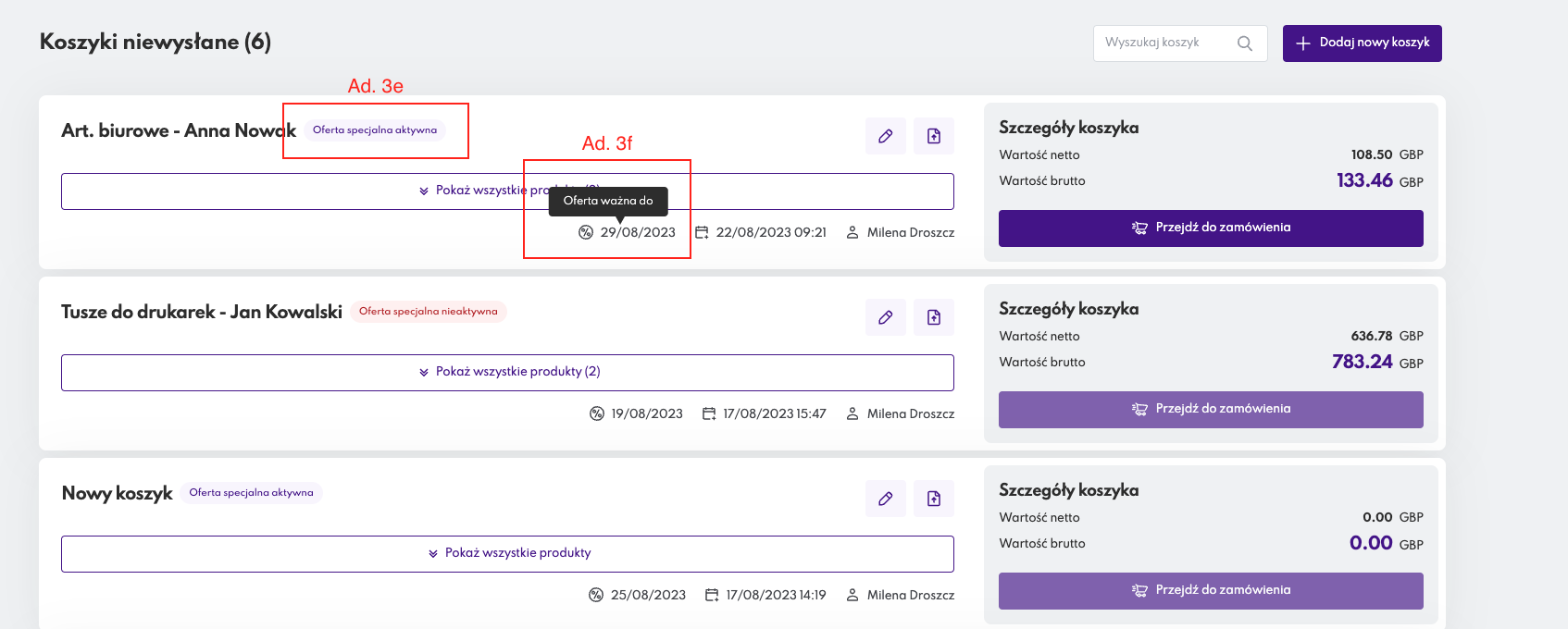e. tag Oferta specjalna aktywna oraz Oferta specjalna nieaktywna. pozwala na wyodrębnienie na listingu wszystkich koszyków ofertę aktywną bądź nie.