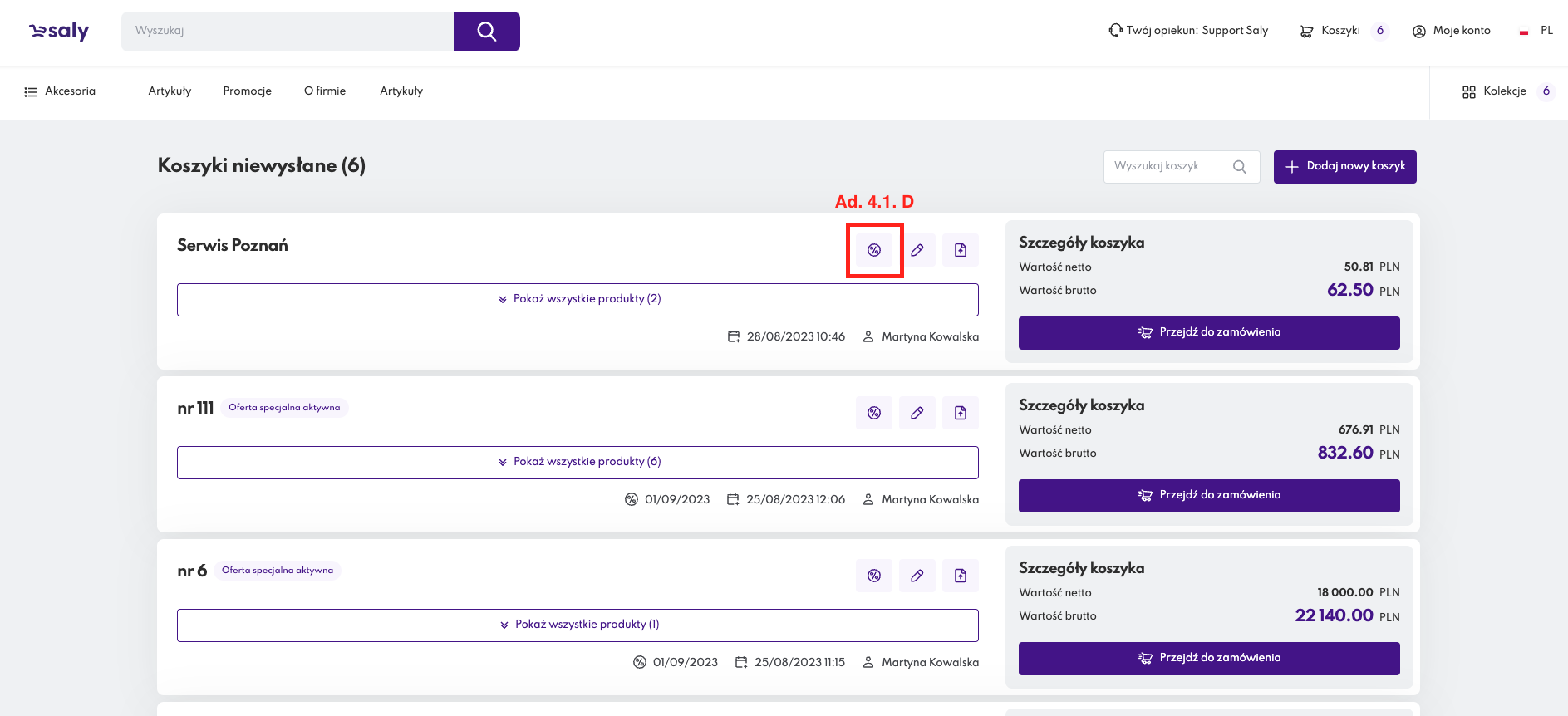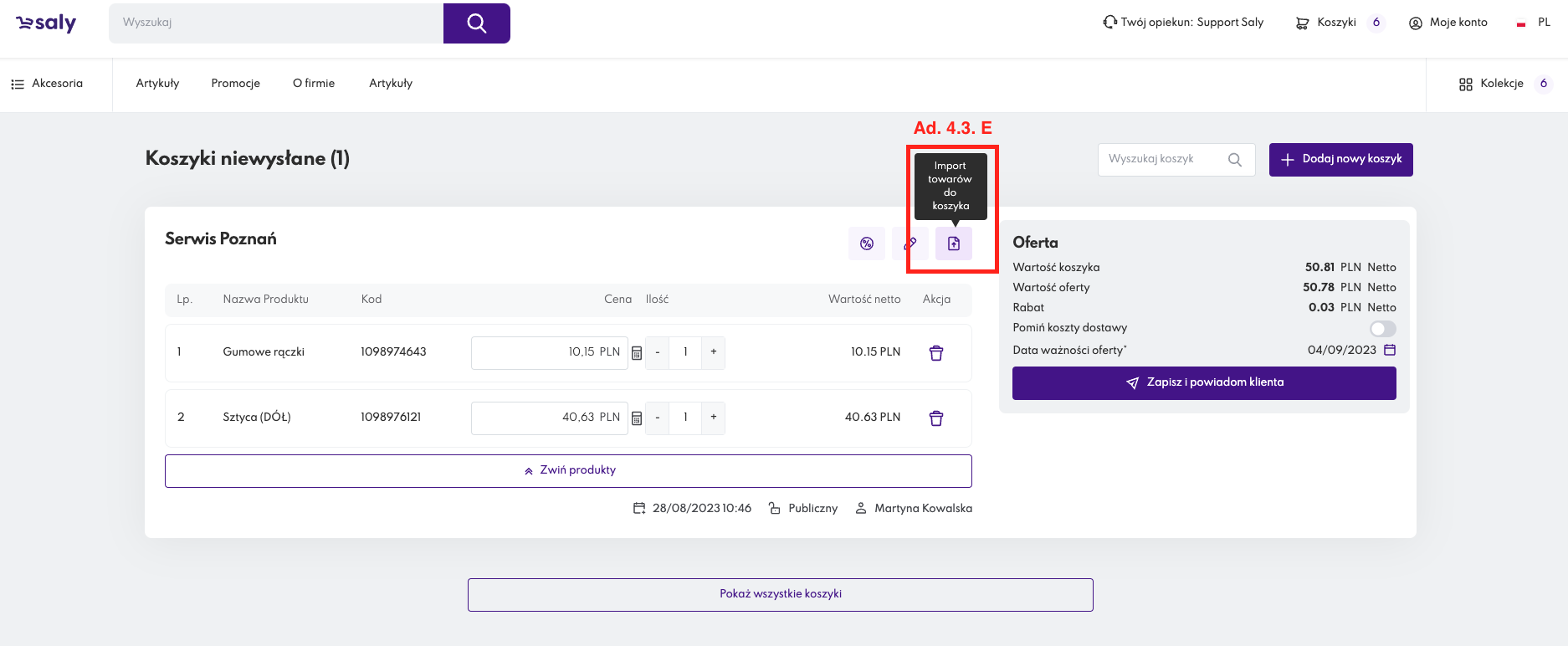 E. otworzy się wówczas nowy widok Koszyka-Oferty specjalnej pozwalający Ci na: