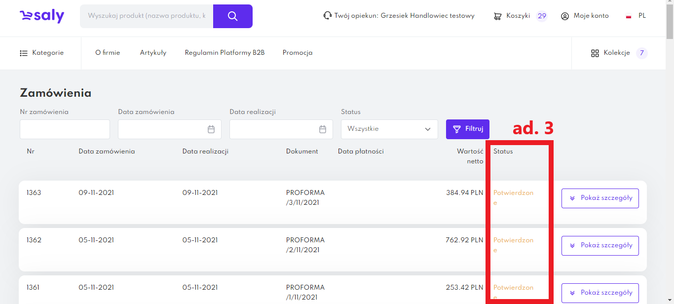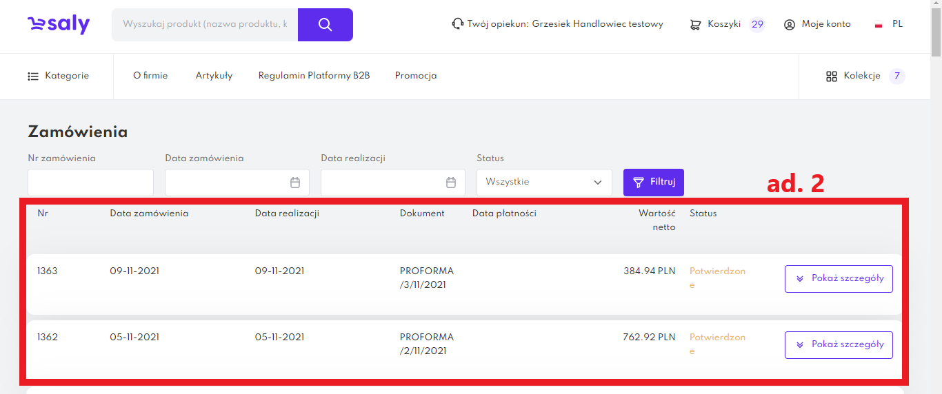 1.0 Pierwsza wersja instrukcji. | 24.11.2021 | moje konto, zamówienia, płatności, szczegóły zamówienia, szczegóły |