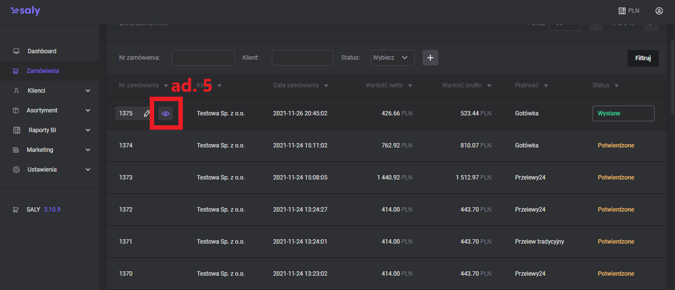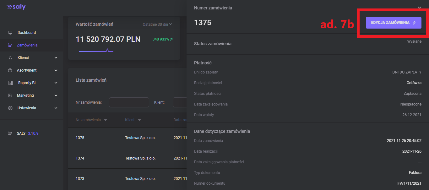 After hovering the cursor over the selected order, select the eye symbol and then in the newly opened window press the Edit order button.