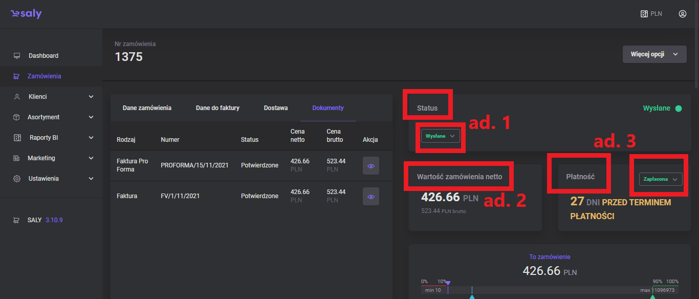 1.0 Pierwsza wersja instrukcji. | 04.03.2022 | pozostałe kafelki, status zamówienia, wartość zamówienia netto, płatność, notatki |