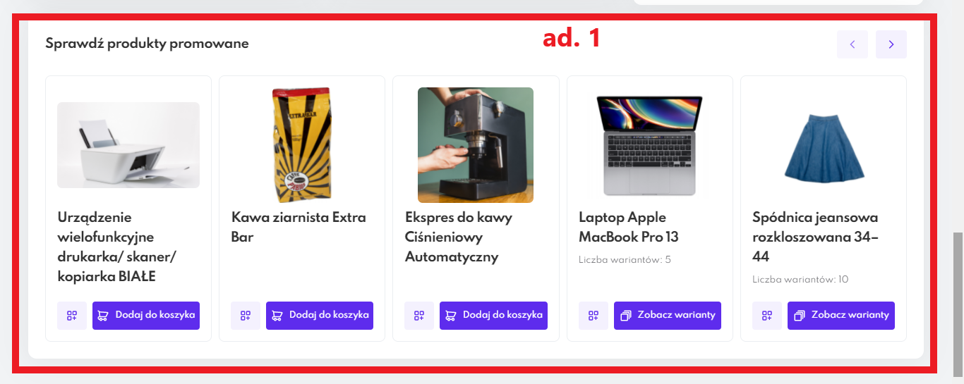 To check other promoted products, use the button in the upper right corner.