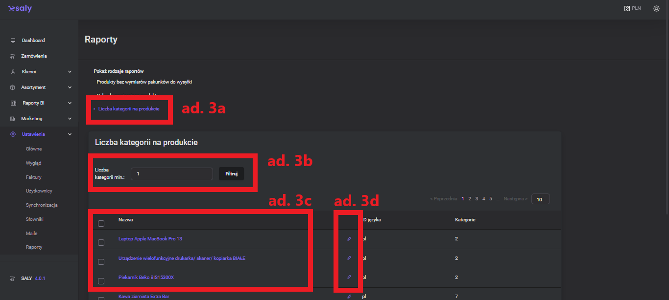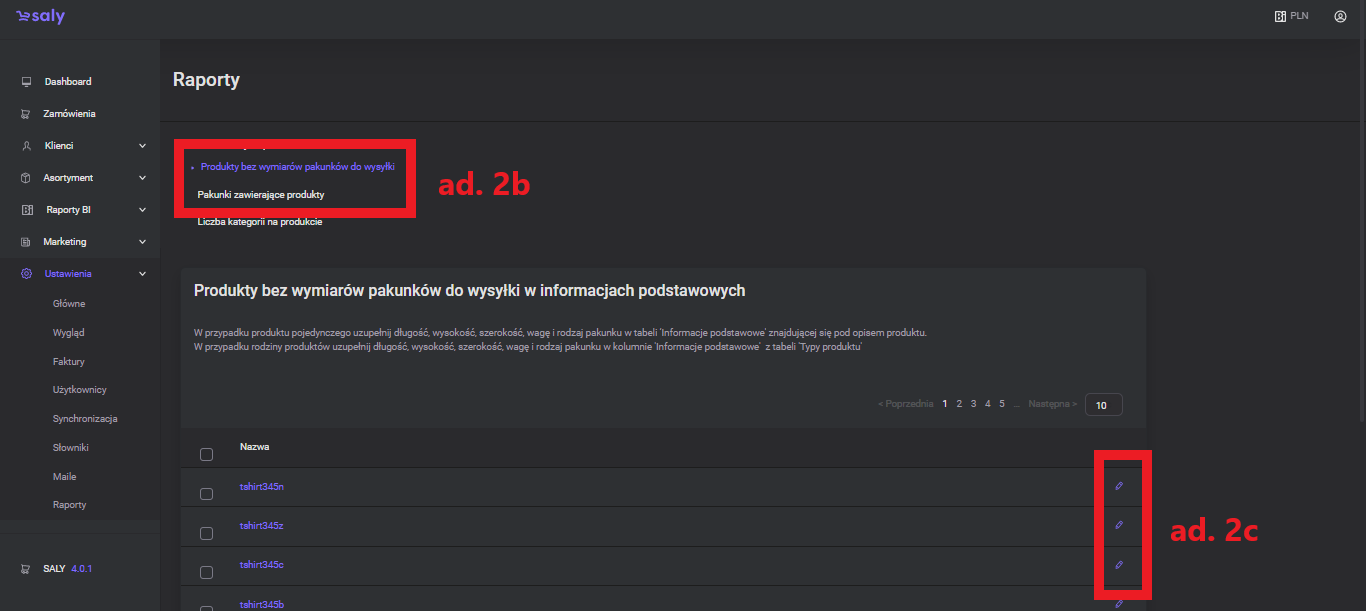 In the Reports tab, you can check if all the necessary information about the products is properly assigned (e.g. if there is no lack of information about the dimensions necessary to assign the appropriate packages). This will allow you to conveniently and quickly complete the missing data. You can also check how many categories specific products have been assigned to.
