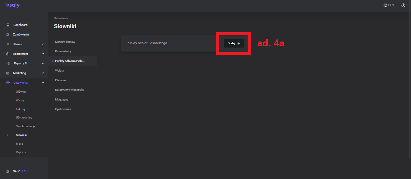 Aby dodać punkt odbioru osobistego, naciśnij przycisk Dodaj.