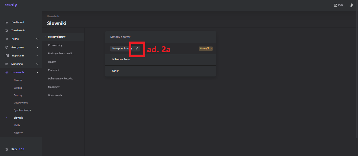 Aby edytować metodę dostawy, najedź kursorem na na wybraną opcję i naciśnij symbol edycji.