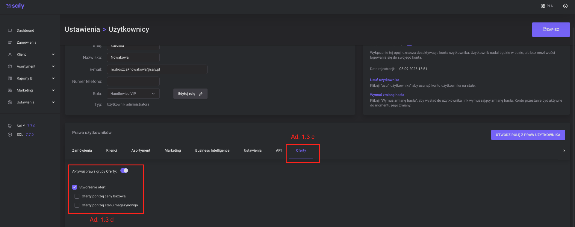 d. prawa znajdujące się w zakładce Oferty, są włączone.